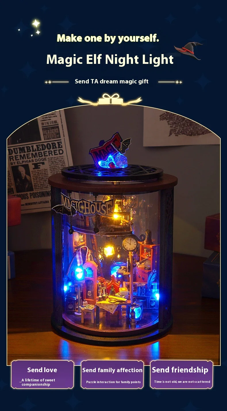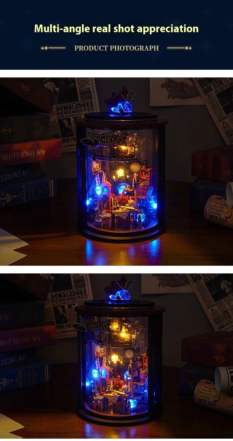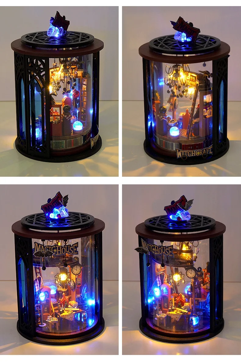 Diy Wooden Magic House Bottle Doll Houses Dark Night Casa Miniature Building Kit Dollhouse With Furniture For Girls Xmas Gifts